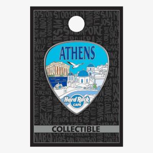 Core Skyline Pick ATH The guitar pick shaped pin has a calming scene with the Parthenon in the backdrop and with the city in the foreground. The bright design will make this pin pop out and draw eyes.