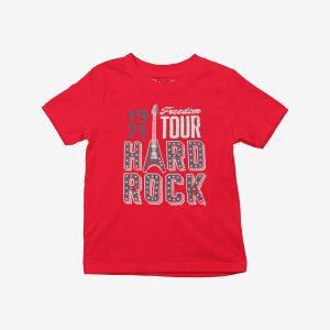Americana Youth Fit Red Tee with Freedom Tour Motif Red and ready to go! Let your child express their independent spirit with our red, youth fit Hard Rock Americana T-shirt. This tee features a unique, freedom tour design, with a V guitar at center – perfect for young little one. Crafted with ultra soft, 100%…