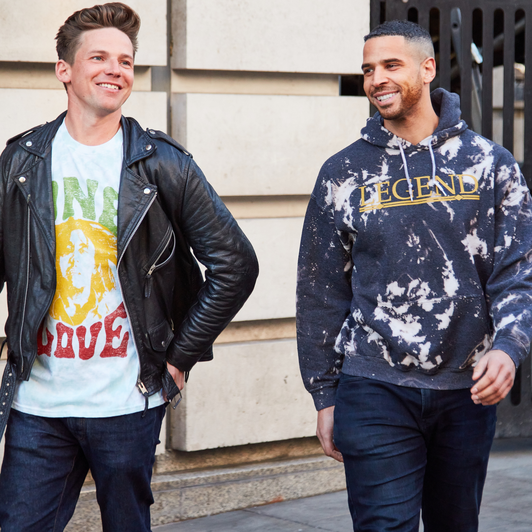 Bob Marley Adult Fit Hoodie with Bleach Effect Design Feel like the legend himself when you wear this bleached hoodie that showcases the iconic imagery from Bob Marley greatest hits collection. One of the bestselling albums of all time. Featured with a bleached wash that adds an elevated fashion vibe. With metallic ink.