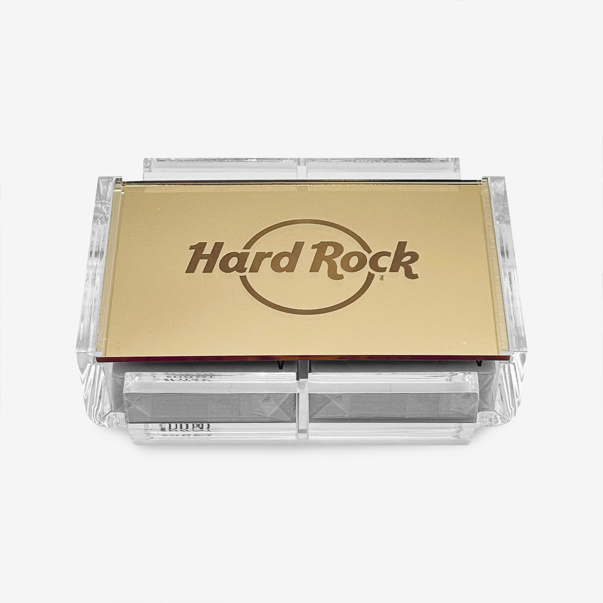 Hard Rock Double Card Deck in Golden Mirror High stakes meet high style. The Luxe Dominoes x Hard Rock Double Card Deck in Golden Mirror is built like a jackpot—sleek, compact, and impossible to ignore. Sealed inside a flame-polished acrylic case and crowned with a gold mirror lid, it’s a bold invitation to shuffle, deal, and dominate the table.