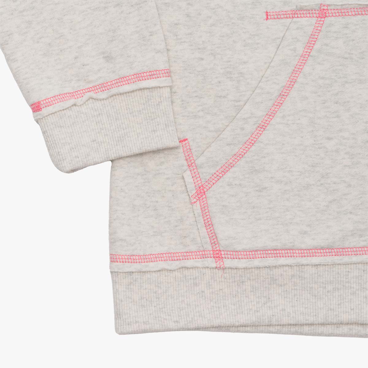 Crafted from 60% cotton and 40% polyester brushed back fleece, this hoodie features a subtle yet playful pop stitch logo embroidery.