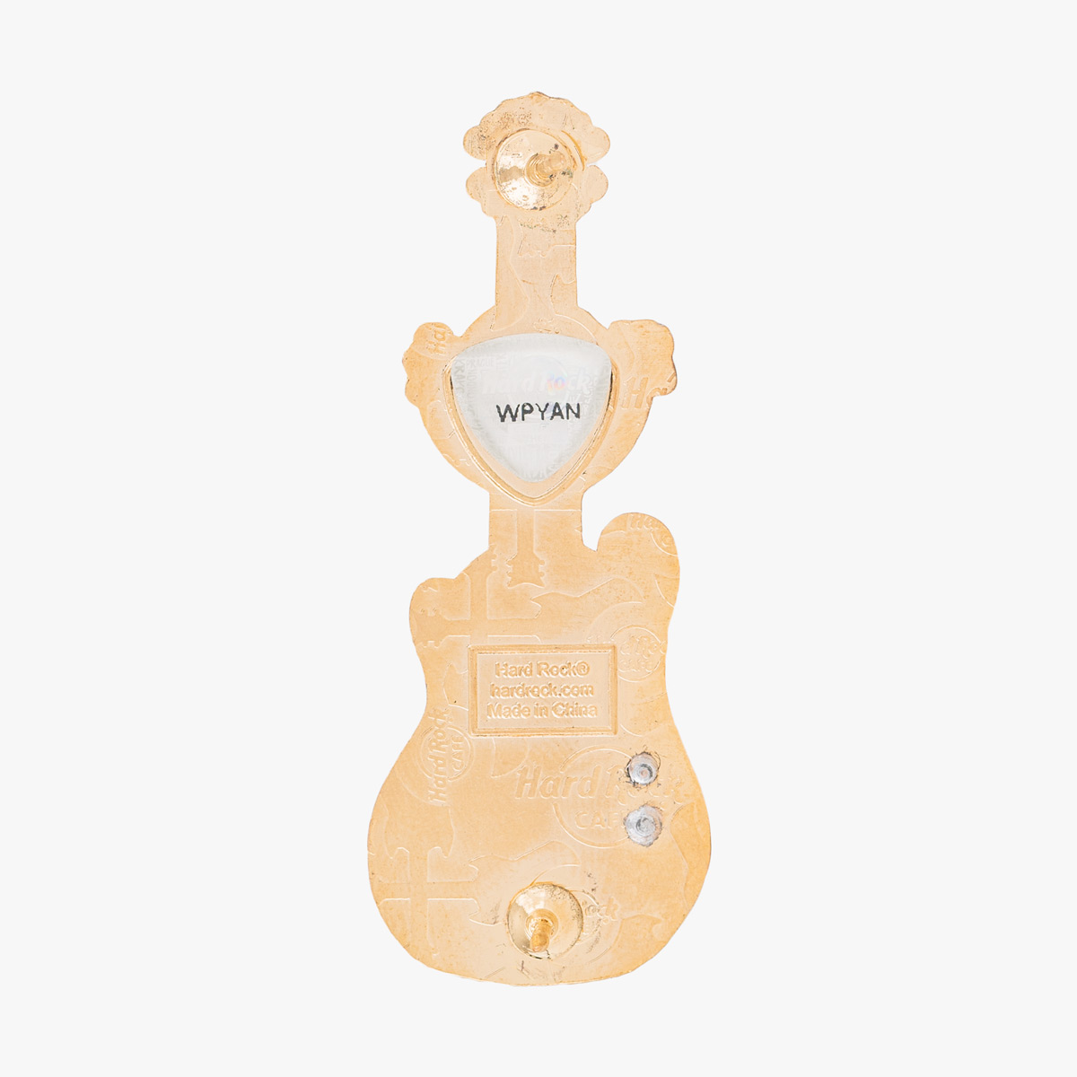 London Hinged Phone Booth Guitar Pin This unique hinge pin features an iconic red telephone booth on a Union Jack base, completed with a bright red neck and headstock. Opening the door reveals Big Ben in the distance and our Love All – Serve All motto.
