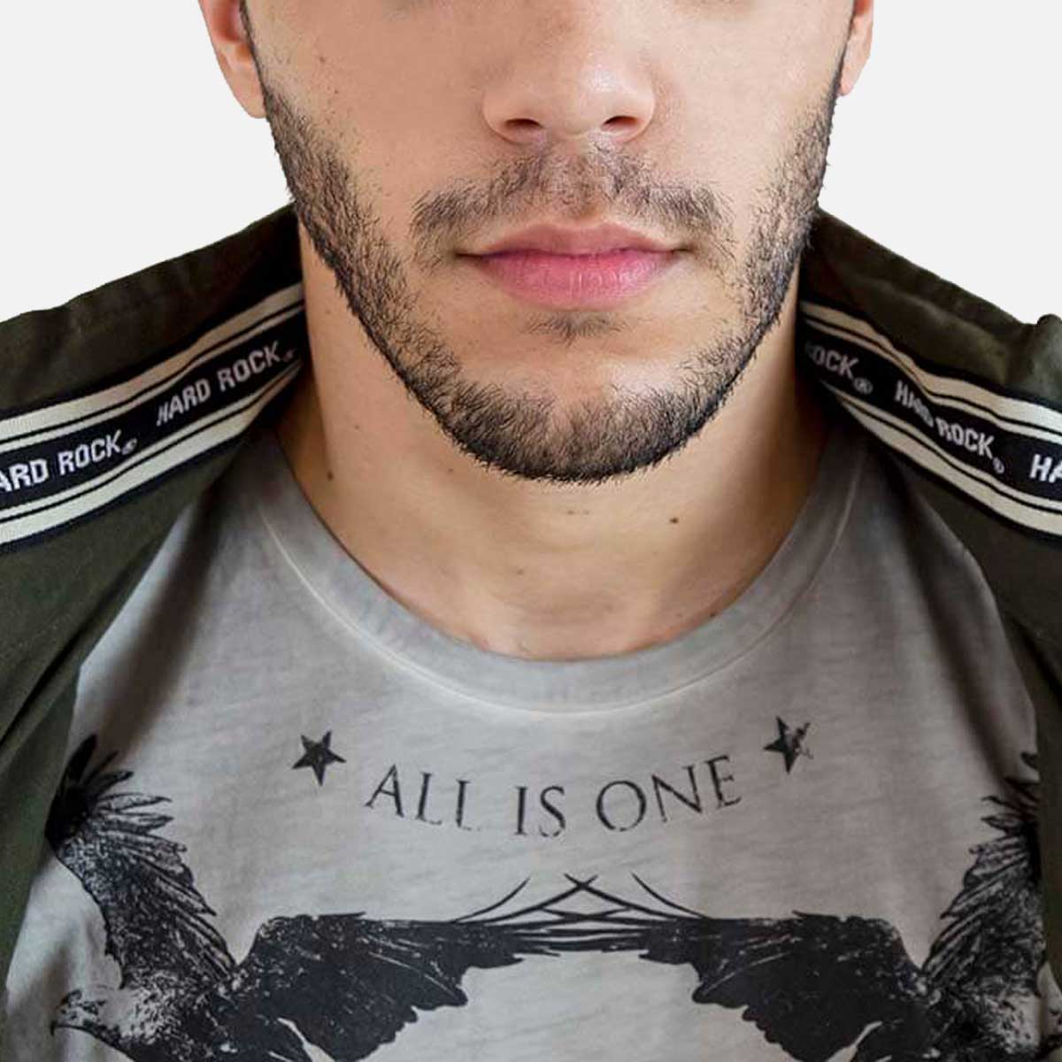 Make the room stand at attention in this versatile, modern-fit army green military inspired jacket – designed exclusively for the Hard Rock. Versatile to wear everywhere and keep you stylish but also warm. Fabric feels like a washed jean cotton material that is soft yet durable to the touch. Add more pins and patches to give it your own look. Finish the look with your favorite pair of vintage denim jeans.