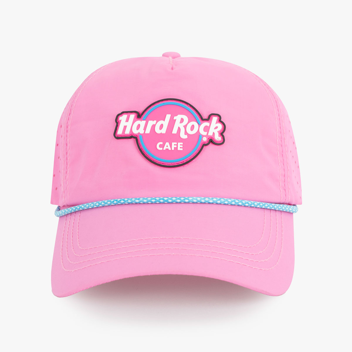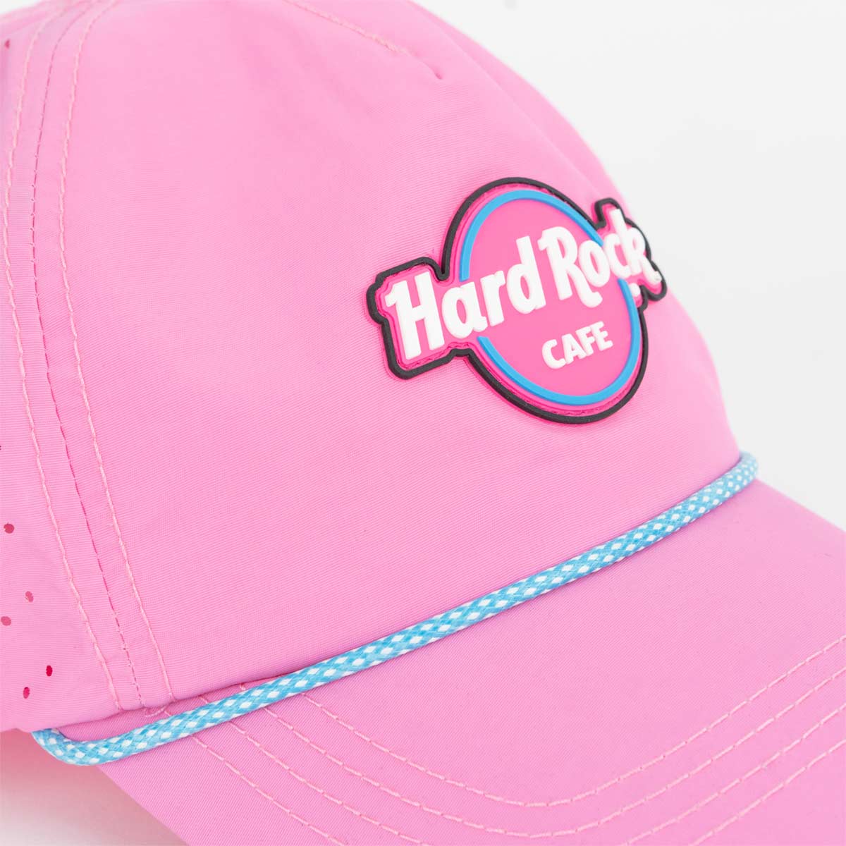 Neon Logo Performance Rope Hat in Pink Introducing our neon series performance rope hat in striking pink. Engineered for style and functionality, this hat combines vibrant aesthetics with high-performance features. Hard Rock branded rubber patch at front.